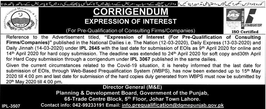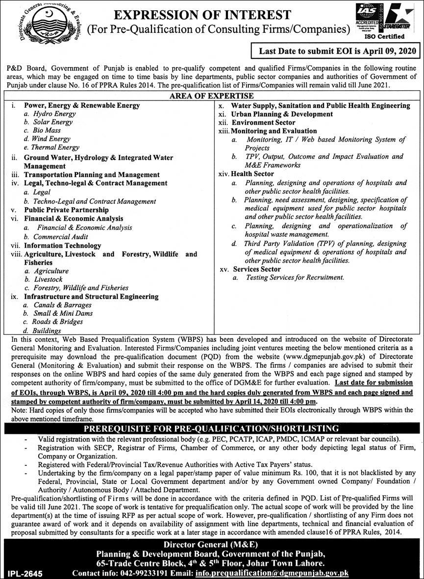 Advertisement Of Expression Of Interest For Pre-Qualification Of Consulting Firms For 2019-20