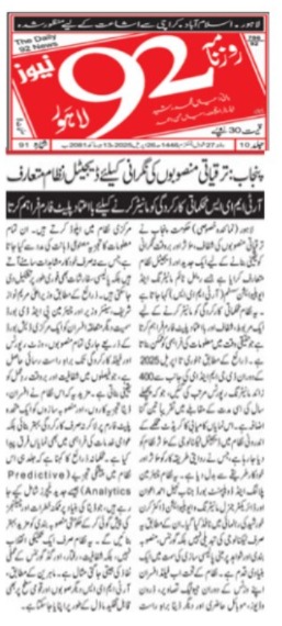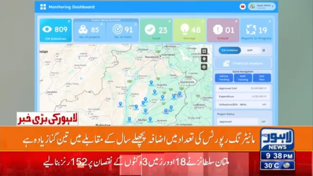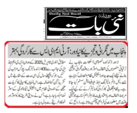 حکومت پنجاب کی جانب سے ترقیاتی منصوبوں کی مؤثر نگرانی اور شفافیت کو یقینی بنانے کے لیے ریئل ٹائم مانیٹرنگ اینڈ ایویلیوایشن سسٹم (آر ٹی ایم ای ایس) متعارف کرایا گیا ہے۔ اس نظام کے تحت فیلڈ افسران کی جانب سے جیوٹیگڈ تصاویر، ڈرون ویڈیوز اور دیگر ڈیٹا مرکزی پلیٹ فارم پر اپ لوڈ کیا جاتا ہے، جس کا تجزیہ مصنوعی ذہانت کی مدد سے کیا جاتا ہے۔ وزیر اعلیٰ پنجاب محترمہ مریم نواز شریف اور چیئرمین پی اینڈ ڈی بورڈ کی جانب سے منصوبہ جاتی پیش رفت کو حقیقی وقت میں ملاحظہ کیا جاتا ہے۔ یہ نظام شفاف طرز حکمرانی اور بروقت فیصلوں کی جانب ایک مؤثر پیش رفت ہے۔